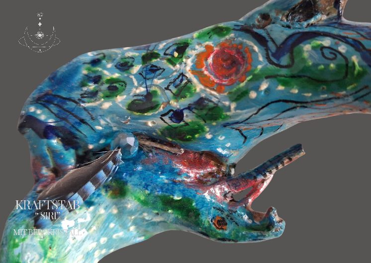 Diese Kraftstäbe sind ausgesuchte Fundstücke in der Natur gesammelt. Jeder Stab trägt seine eigene Geschichte und Wissen in sich. Wenn du mit dem Stab in Verbindung gehst, kannst du diese Energieform oftmals wahrnehmen. Es ist eine Uressenz, die uns in die Kraft, Weisheit und göttliche Anbindung führen kann. Nicht jeder Stab will von mir mitgenommen werden und während ich den Stab bearbeite und bemale entwickelt sich ein Dialog auf Gefühlsebene. Jede Ausformung vom Stab, jede Vernarbung und Einkerbung wird wahrgenommen und in Ergänzung mit einen Heilstein erhält der Kraftstab seine Vollendung.